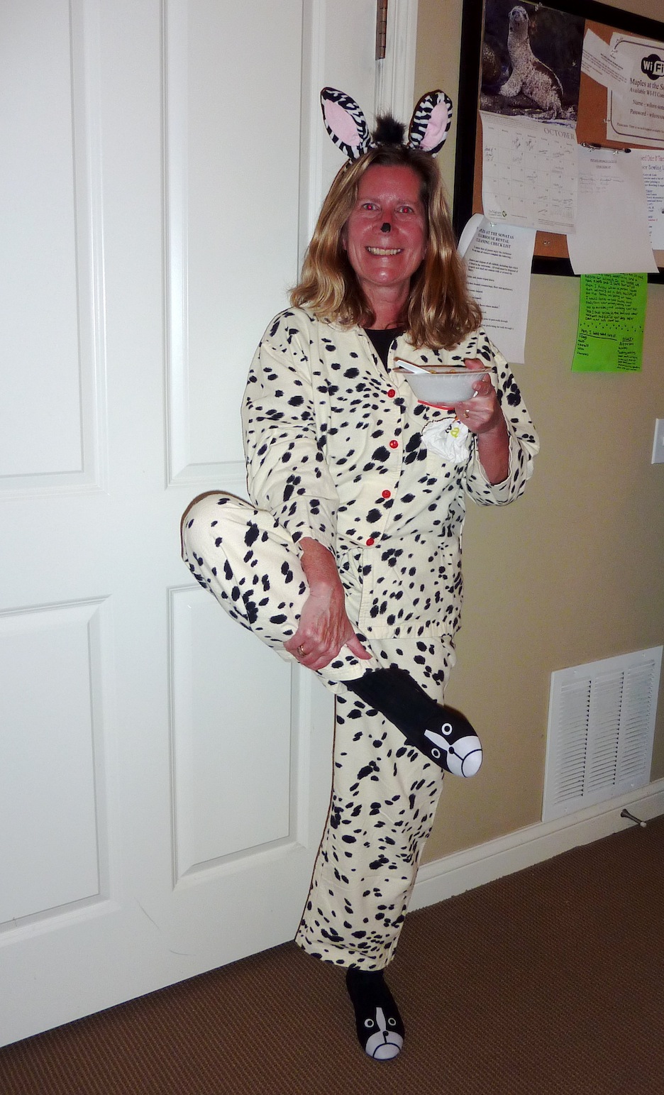 A big thanks to our very hard-working social committee for giving us a delightful evening. Here’s their leader, Sylvia, demonstrating how to eat chili while balancing on one leg. Well, really, she just wants to be sure you notice her shoes.