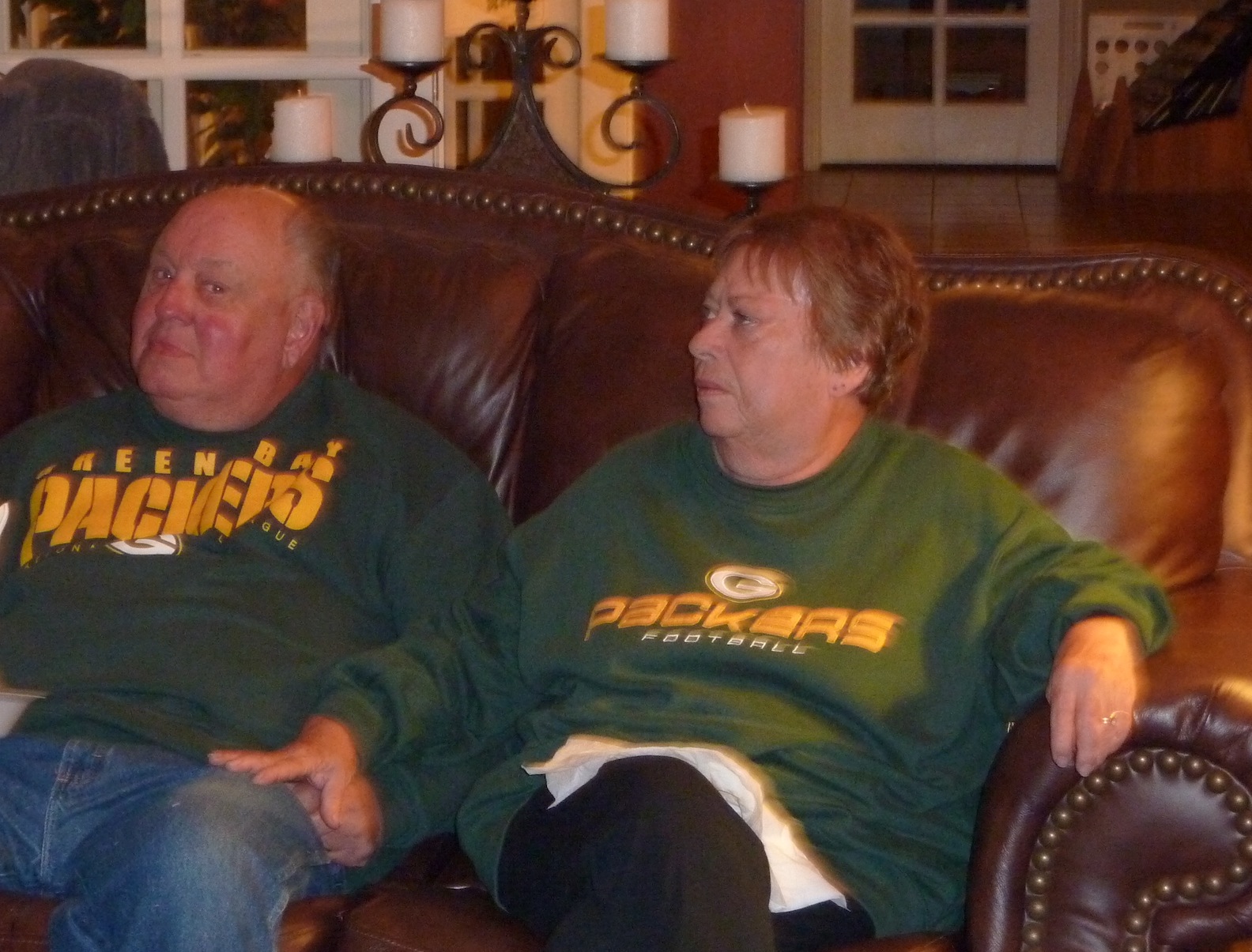 Later in the game, Linn’s expression says it all, and Fred has to look away from the TV.