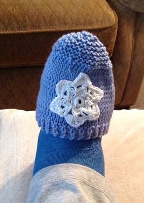 Crafts with Cathie held its first meeting this week. Despite nasty blowing snow, seven women met to discuss organizational details and to chat about projects. Cathie, the talented leader, knitted the pictured toe cozy for me to wear over my cast.