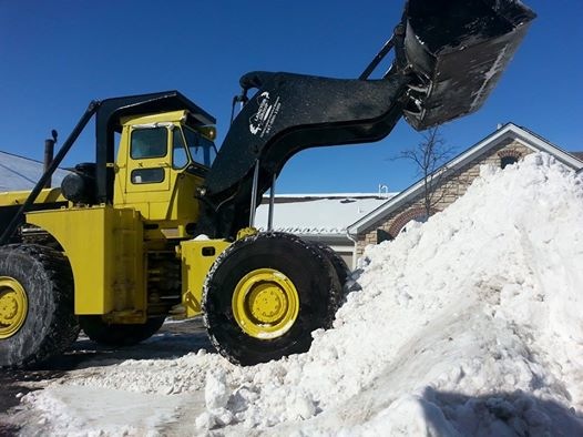 After getting over 60 inches this winter, we have run out of room to stack it. So our snow removal company, Langton, is “relocating” it today. It’s time to call in the heavy equipment, much to the delight of Shirley’s little granddaughters who have a closeup view of the operation.