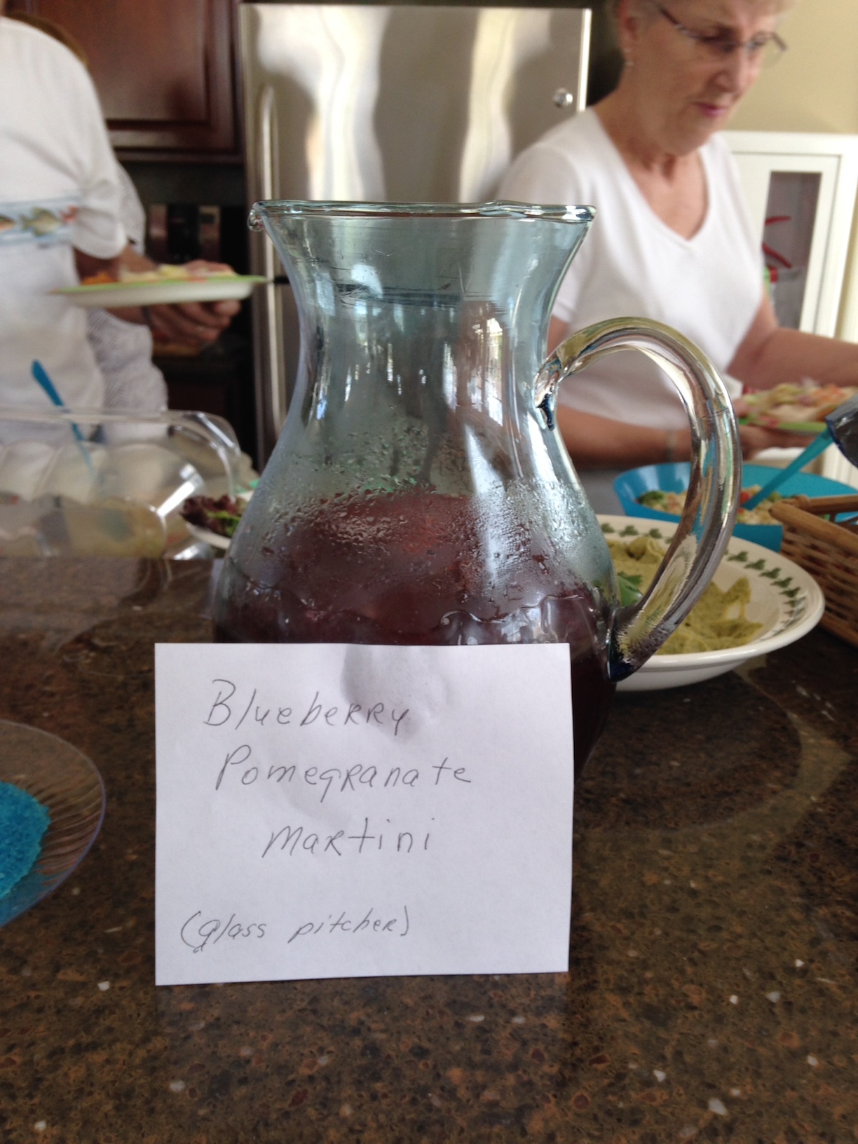 One thing you CAN count on with our community is a large variety of good food. We were asked to bring our own meat, a dish to pass, and our beverage. Our bar/counter was overflowing with tempting side dishes. And Diana came up with one of the tastiest beverages we’ve ever shared.