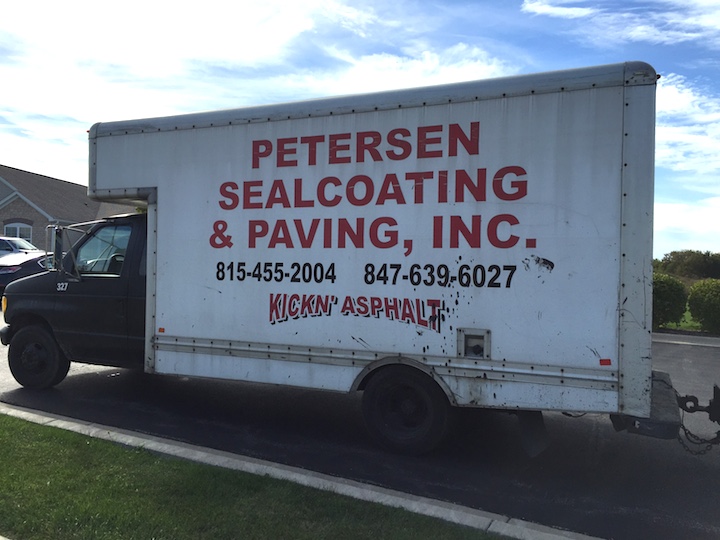 Yes, we’re kickin’ ass-phalt here today at Maples at the Sonatas. Or rather, our contractor is. It’s seal coating day for half of our driveways. We’ve grown so much that it now takes two days to complete the job.