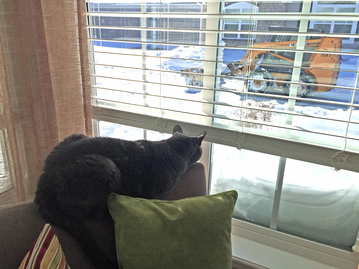 And I had to laugh as I watched Shadow watch the Bobcat clearing our driveway. She’s probably wondering why that machine has the word cat in its name. Our community owes a huge thank you to Langton Landscaping and the city of Woodstock for moving a ton of snow out of our way.