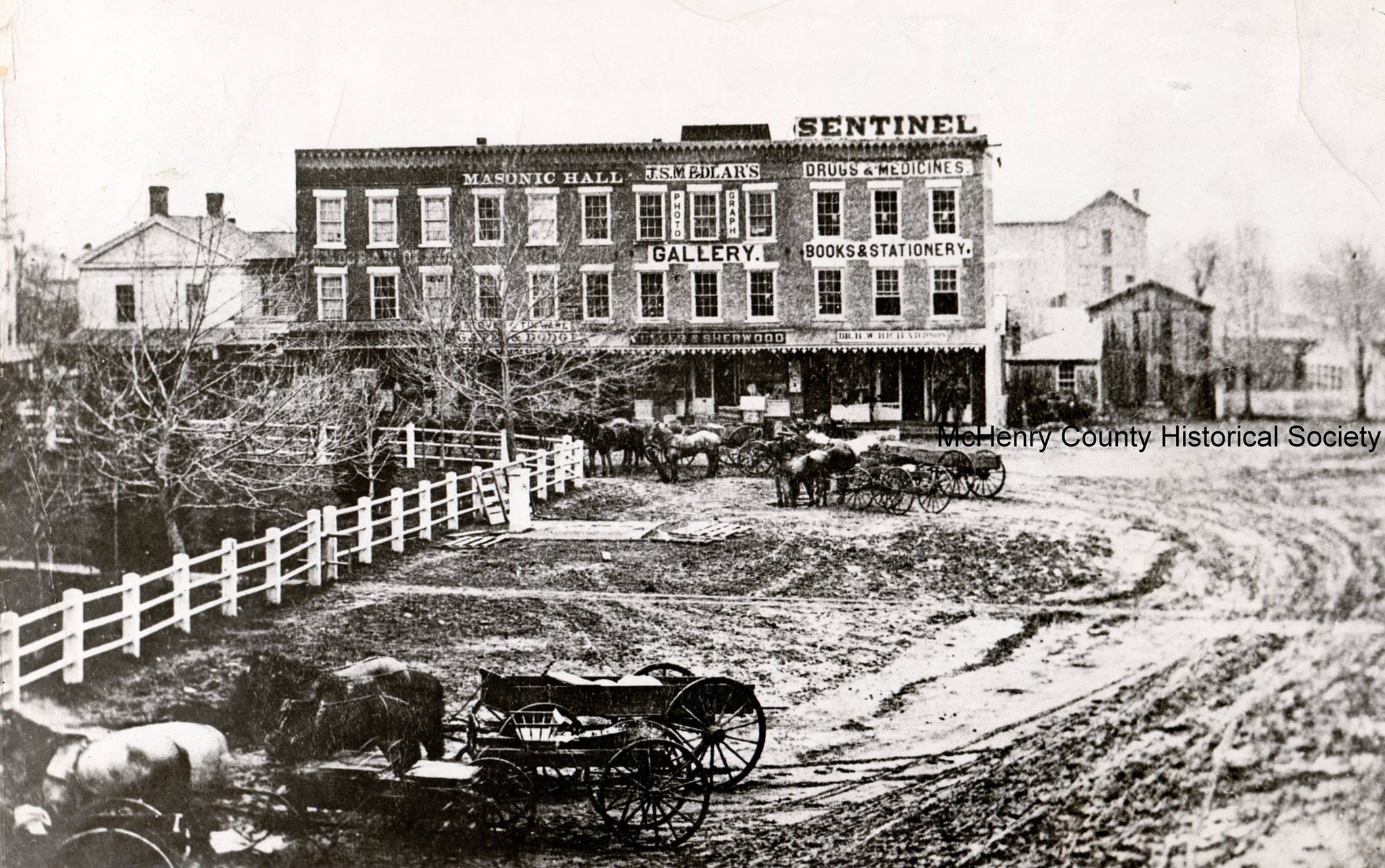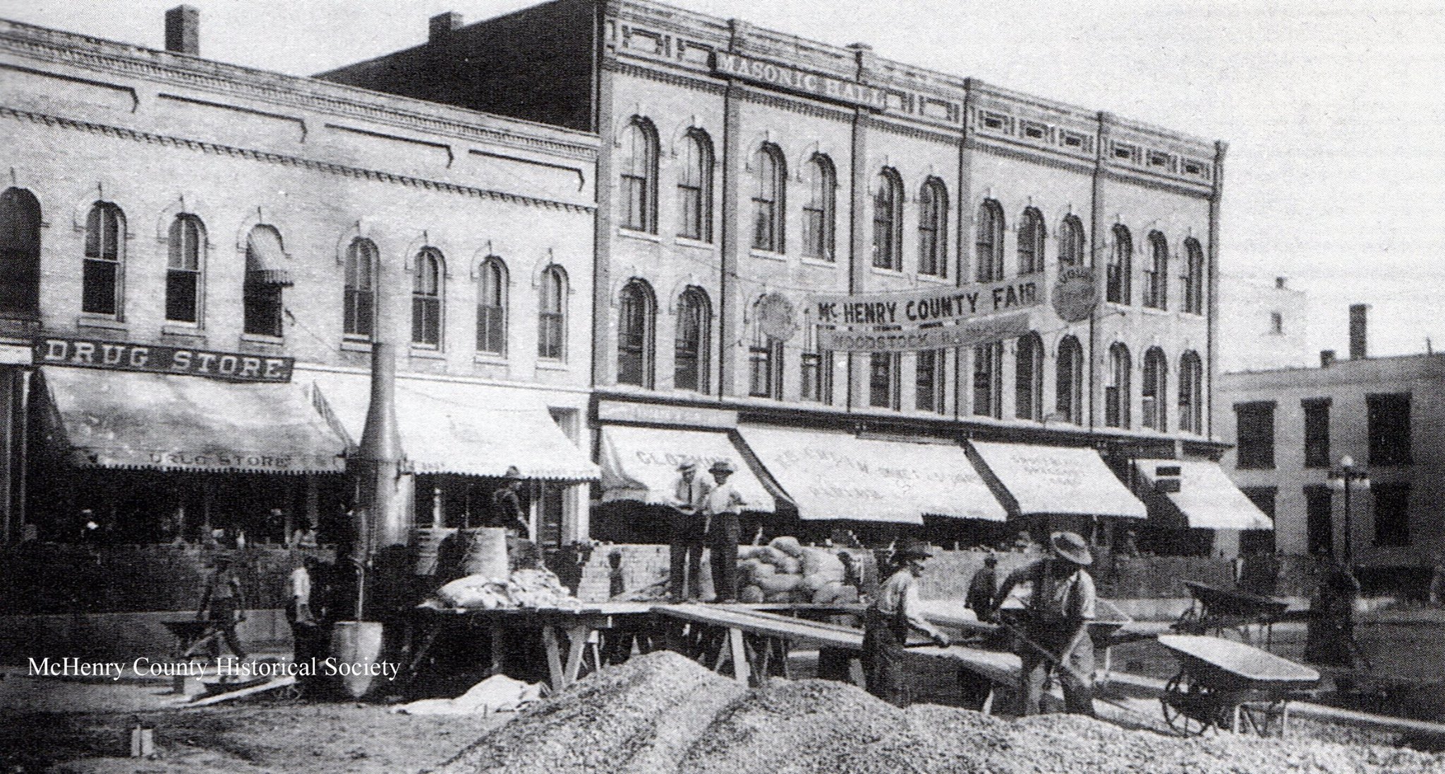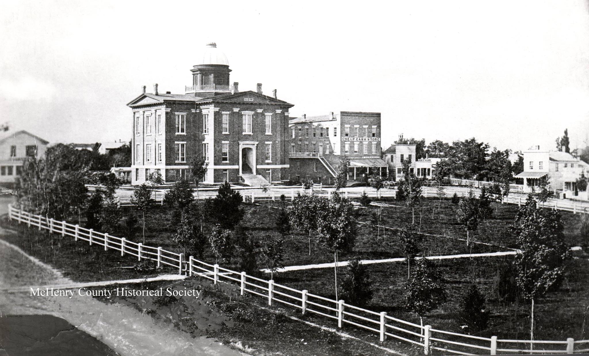 Woodstock, Illinois, became the county seat of McHenry County. A courthouse was built on the Square in 1857 at a cost of $47,000. The Square itself was graded and planted with elm trees in 1858-9. These photos from the 1860s show what it looked like at the time.